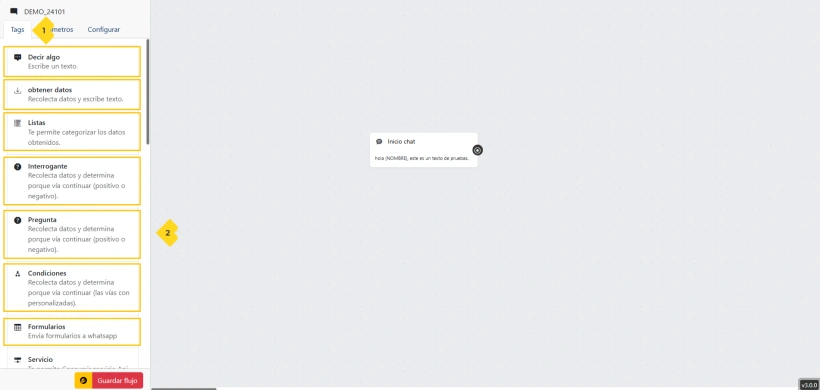 En esta sección encontrarás un listado de componentes que podrás utilizar para la creación de tu flujo de diálogo. A continuación, te detallamos cada uno de ellos y te mostraremos ejemplos sobre cómo utilizarlos: